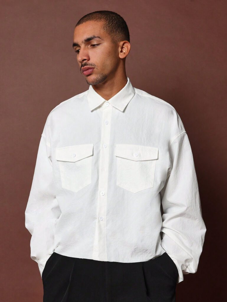 SUMWON Chemise utilitaire à manches longues et ourlet brut court