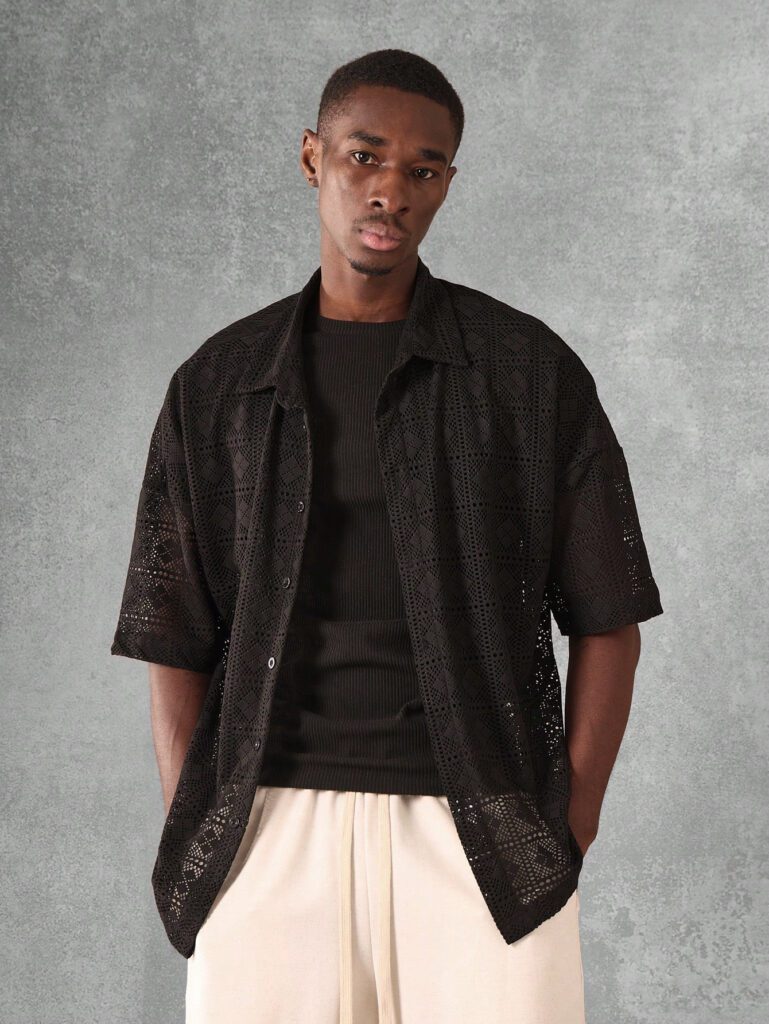 SUMWON Chemise à manches courtes avec dentelle au crochet, coupe regular