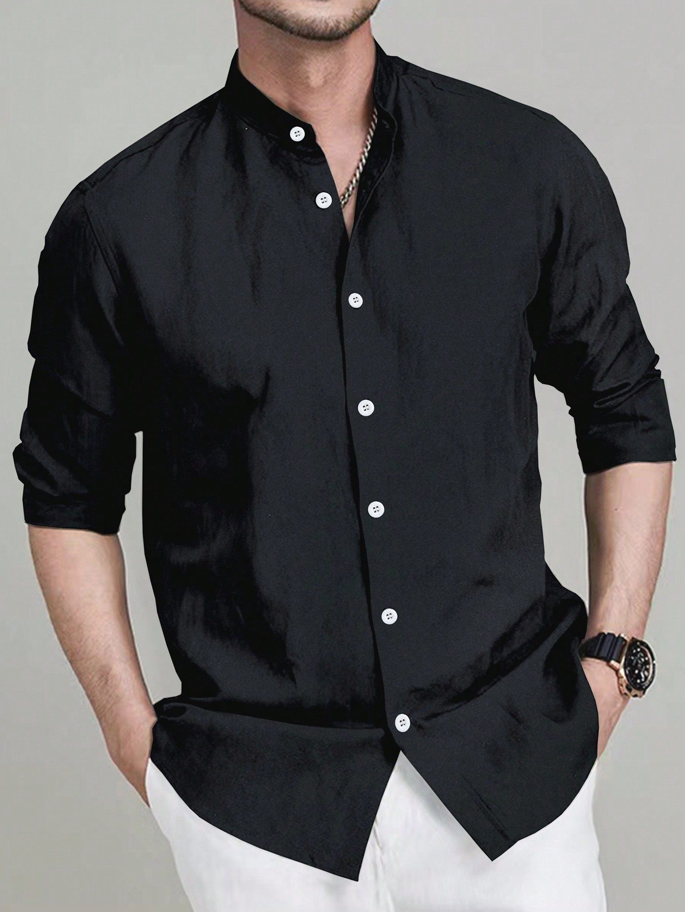 Manfinity Mode Chemise à manches longues unie pour homme dans un style d’affaires avec boutons