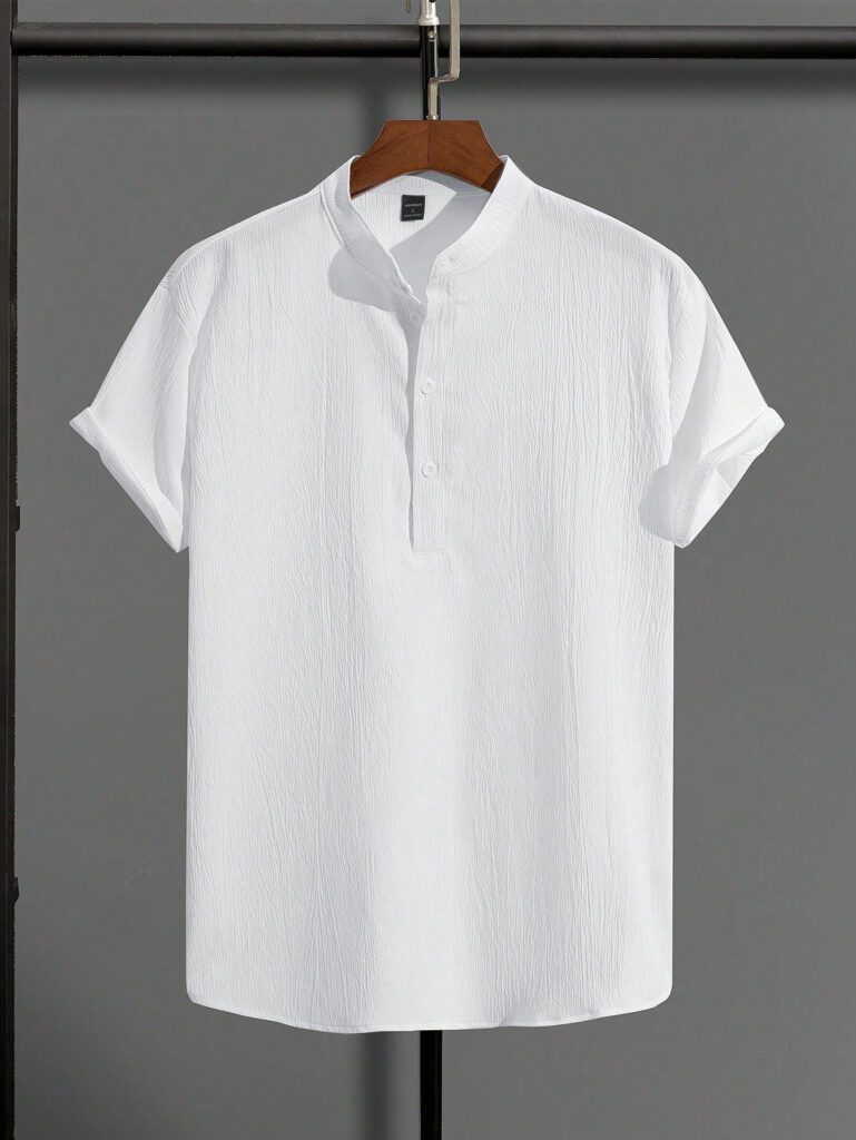 Manfinity CasualCool Chemise à manches courtes texturée unie en maille décontractée pour hommes, pour l’été, pour le mari, en vacances