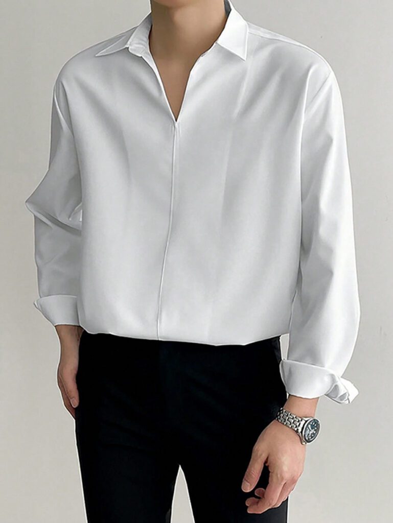 Manfinity Modomio Chemise d’été blanche pour homme, boutonnée, à manches courtes et ample avec col en crochet, parfaite pour les vacances
