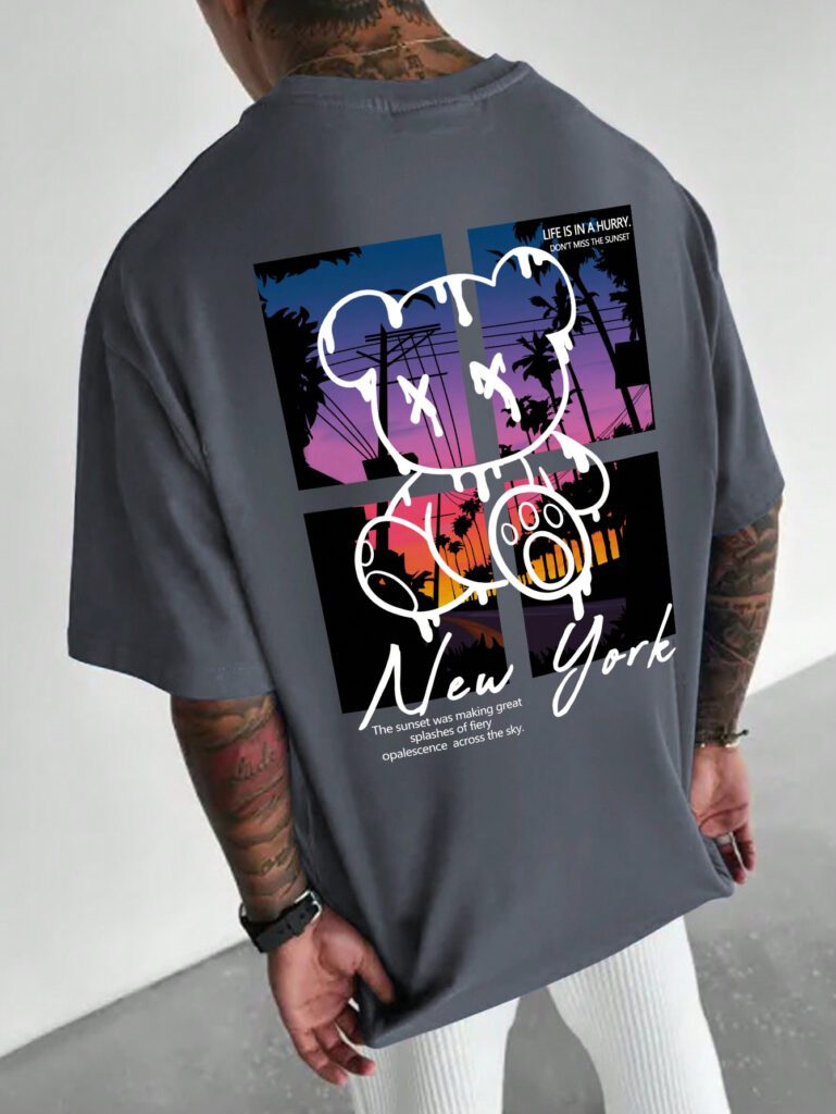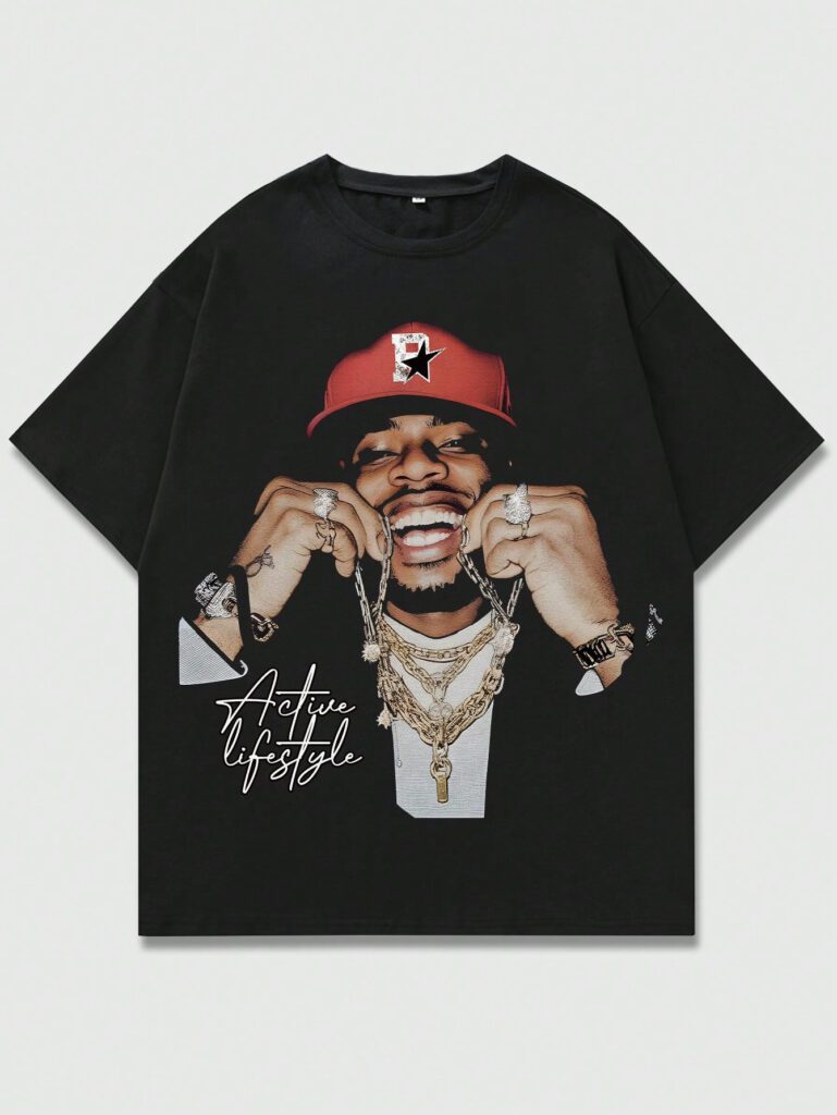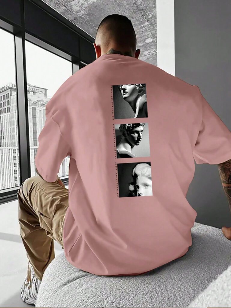 ROMWE Street Life T-shirt à manches courtes avec impression de portrait pour hommes, convient pour le port quotidien au printemps et en été, école