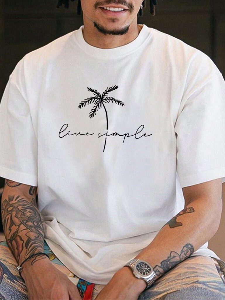 T-shirt Ras Du Cou À Manches Courtes Avec Impression De Lettre Et De Palmier Pour Homme