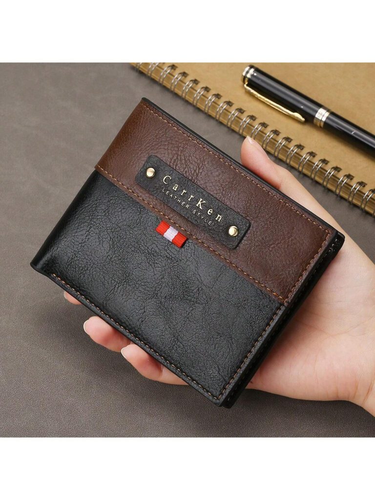CarrKen Portefeuille Court Rétro Pour Homme Avec Blocage De Couleur De Mode, Grande Capacité Horizontale Pour Cartes Et Identification, Cadeau Pour Les Hommes