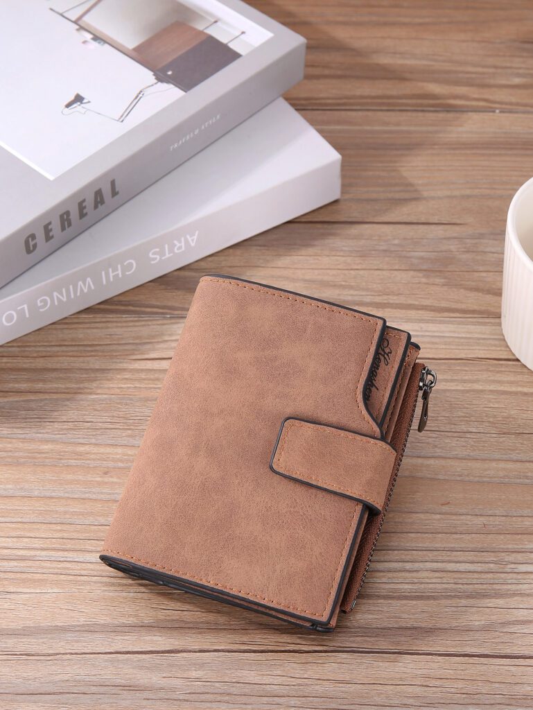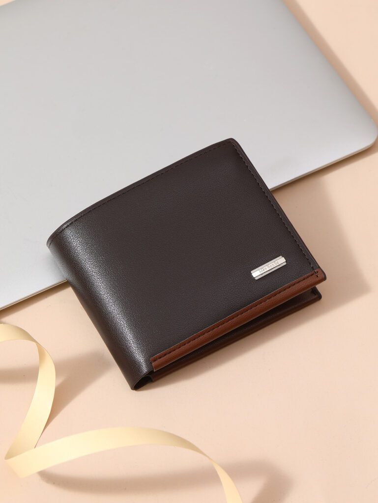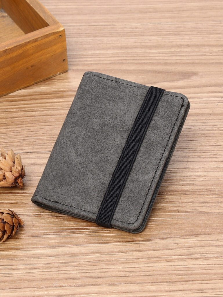 Porte-monnaie métallique décoratif petit portefeuille en PU porte-cartes de crédit petit porte-monnaie pliant pour hommes. Cadeau pour papa, travail de bureau, étudiant, couple, anniversaire, Saint-Valentin