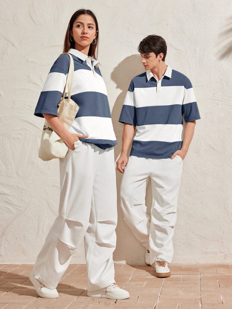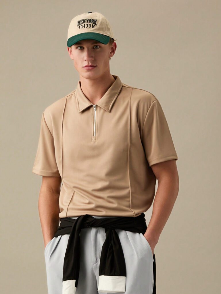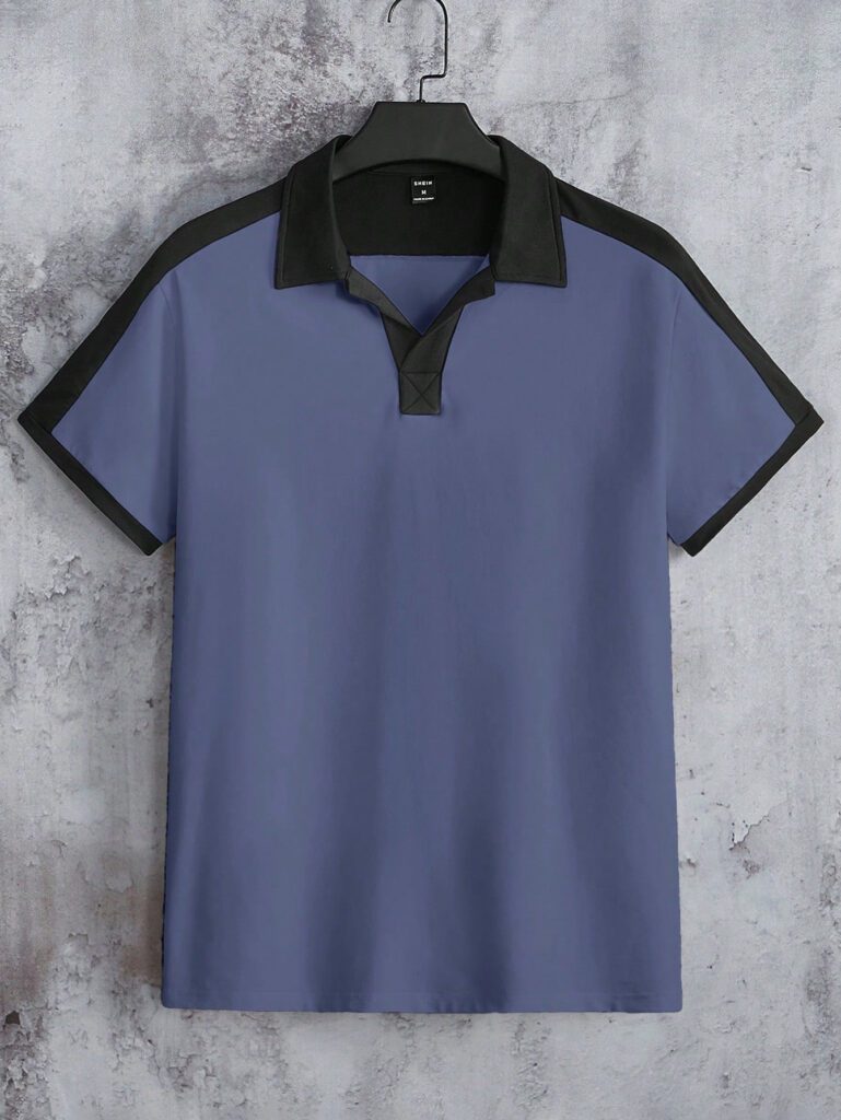 Manfinity RebelGame T-shirt polo tricoté à manches courtes de couleur unie pour hommes, retour à l’école