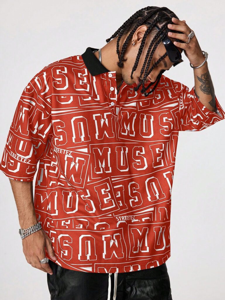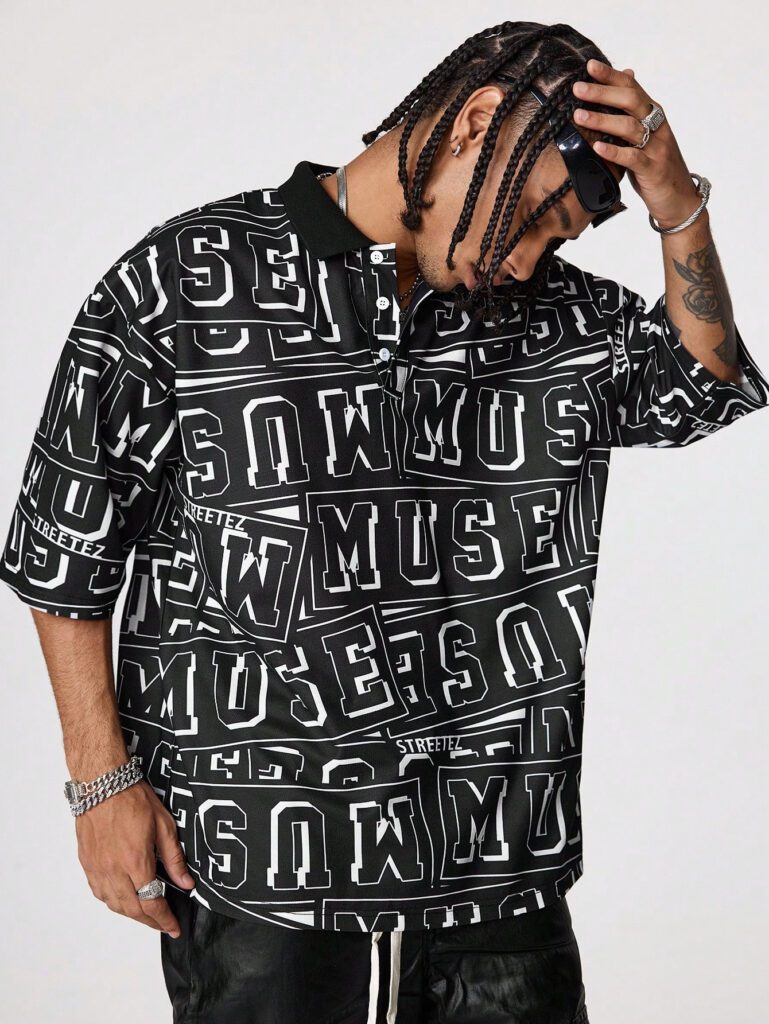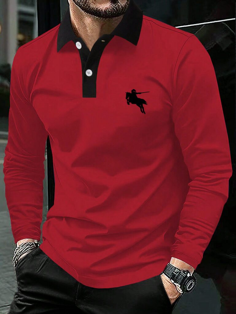 Manfinity Polo Homme À Imprimé Cheval Et Manches Longues